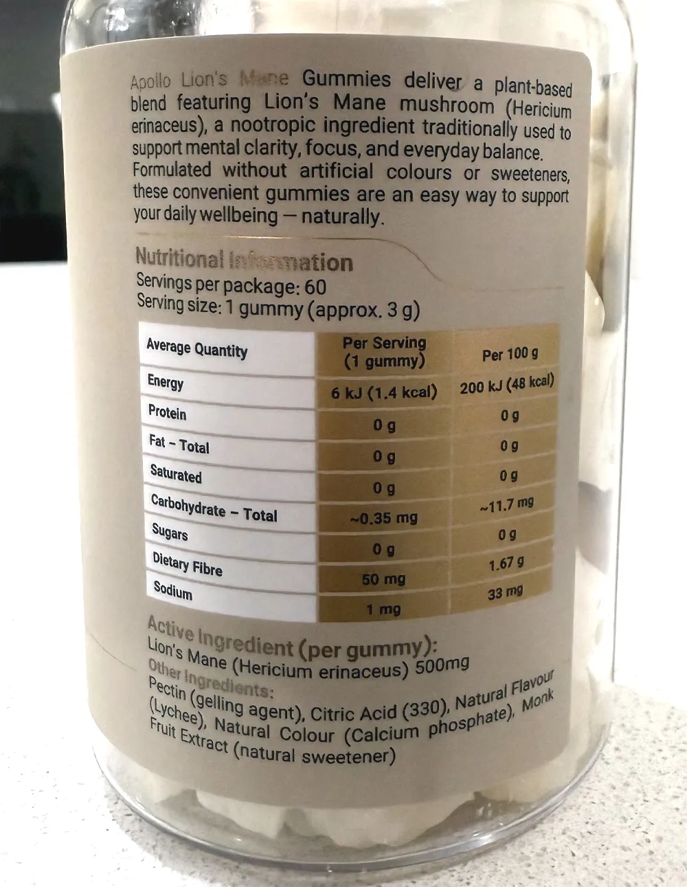 - 500 mg Lion’s Mane extract per gummy