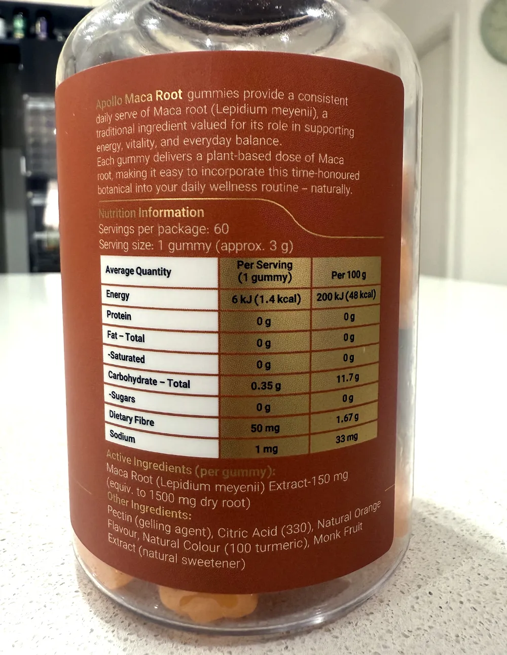 Apollo’s Maca Gummies in Brisbane deliver 150 mg of maca root extract (1,500 mg dry root equivalent) per gummy to naturally support energy, vitality, and daily balance. With a refreshing orange flavour and vegan-friendly formula, they’re a simple and delicious way to add maca to your wellness routine.