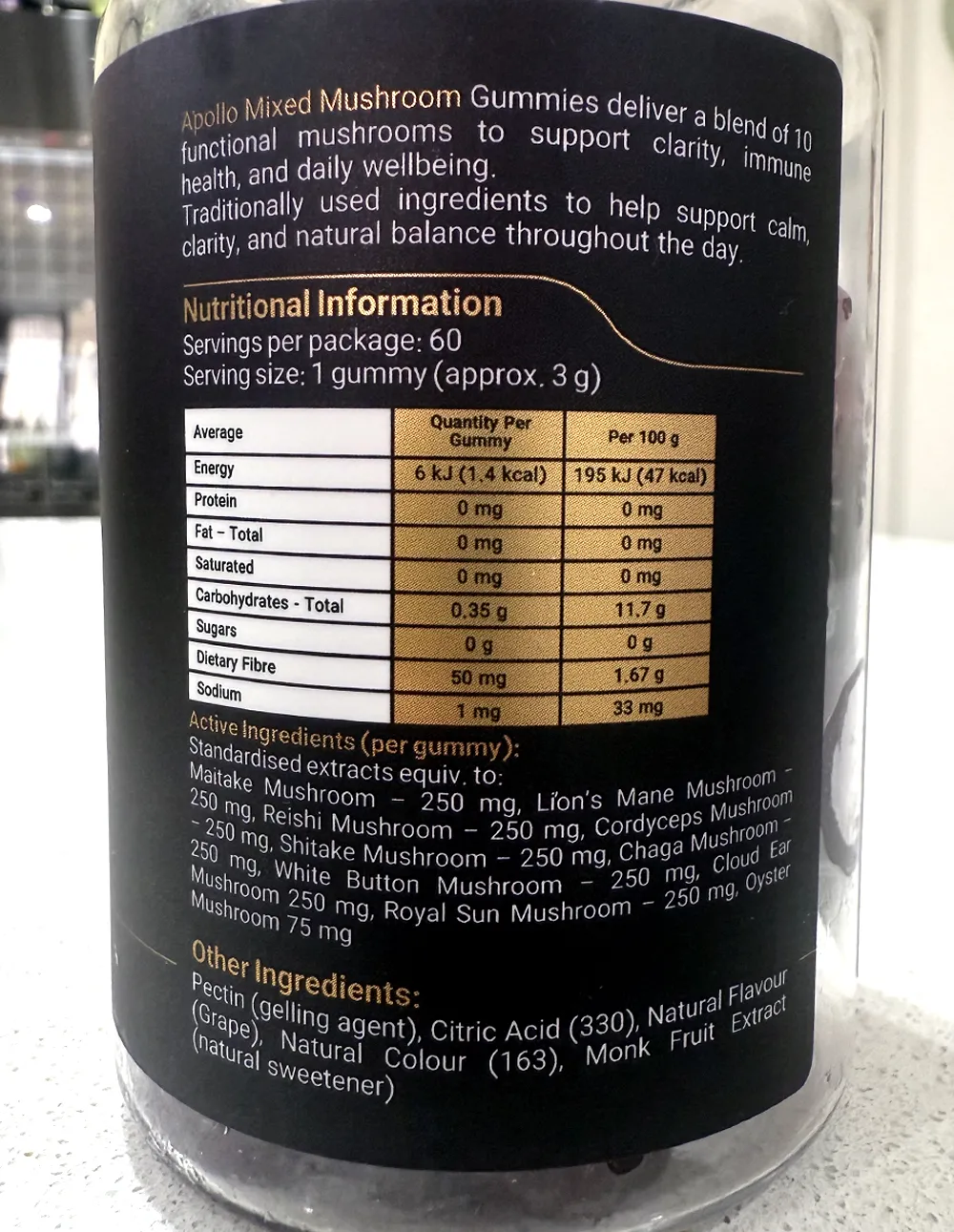 Active Mushroom Ingredients in Apollo Mixed Mushroom Gummies