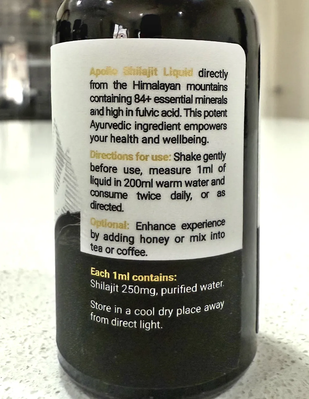 - 250 mg pure Shilajit per ml